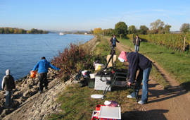 | Jugendausflug 2007 an den Rhein bei Wiesbaden Der Jugendausflug stand in diesem Jahr ganz im Zeichen der Barbe und führte uns an den Rhein bei Wiesbaden. Unterstützt wurden wir hierbei von „Markus und Jens“, die zwei sehr erfahrene und nette Barbenangler sind und sich bereit erklärt hatten uns in die Geheimnisse des Barbenangelns einzuweihen. | ||||